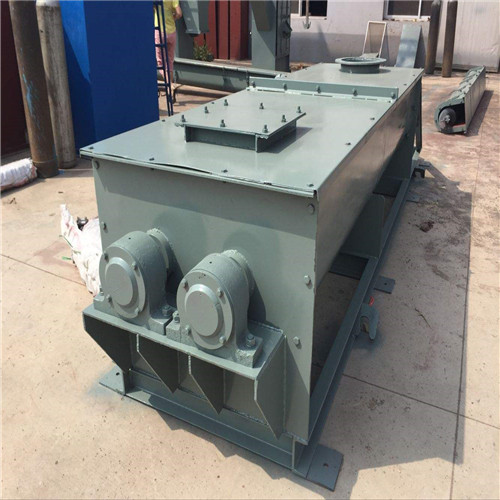 在雙軸粉塵加濕混合器的(de)作用下進(jìn)行萃取、傳質或化學反應時,傳質速率和反應時間的政策是(shì)傳質速率(lǜ)和反應時間。此時,雙軸加濕混合器提高了液相接觸麵積、傳質係數和反應速度,液相(xiàng)疏鬆、細(xì)化。在製(zhì)備懸浮顆粒和Ru溶液時,攪拌(bàn)使液滴細化,增加了相對接觸麵積(jī)。特別是不相容材料,通過雙軸加濕混合器,兩者_混(hún)合,這也增強(qiáng)了(le)設備的攪拌功能(néng),再加上它有兩個混合軸,效益很高。本發明主要用於(yú)火力(lì)發電廠、鋼廠等部位卸灰鬥下部的水噴霧濕法混(hún)合輸送粉料,以抑   製卸(xiè)荷過程中粉塵造成的(de)粉塵汙染,滿足環保部分的排(pái)放要求。