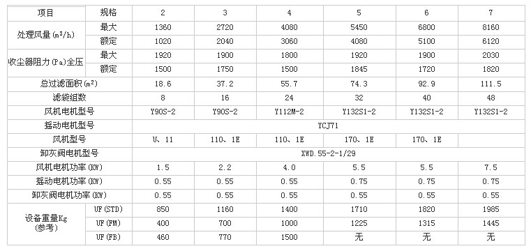 UF單機除塵器技術性能