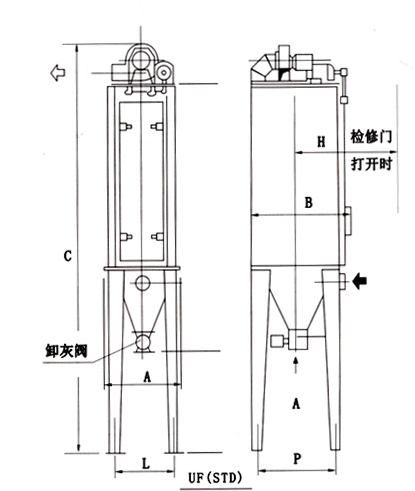 UF單機除塵器主(zhǔ)要尺寸: